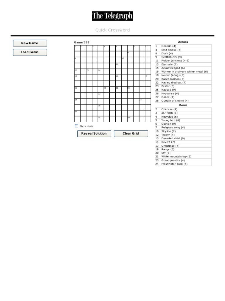 Today's telegraph quick crossword