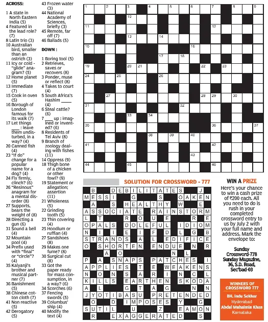 Deccan chronicle crossword